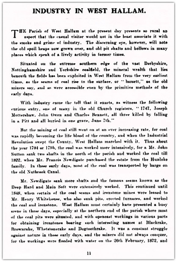 West Hallam Magazine October 1937 Text below picture of page SAINT WILFRID Our patron saint is no legendary figure about whom little is known, but a man with a definite place in history, and that the history of our own land and people. The 7th Century is often described as the Golden Age of the English Church. At the time of Wilfrid's birth (634), the missions of Augustine and Aidan were still fresh in men's minds and their world unspoilt. Nowhere was the result more wonderful than in Northumbria. At an early age Wilfrid became a pupil of the great Abbess Hilda, at Whitby, and among his contemporaries were such men as Cuthbert, Chad, and Bede. No wonder that among such people and at such a time Wilfrid's thoughts turned towards monasticism and learning. He was also a traveller and a man very much in touch with the world. As quite a young man he travelled to Canterbury and thence to Rome, and the result of these travels was that his outlook was very much wider and more in touch with European (at that time Roman) thought than most of the leaders of northern England. The result of this was quickly apparent. He played a leading part in the Synod of Whitby (664), with the result that the English Church accepted the Roman calendar, and by so doing, not only closed up differences at home, but came into line with the remainder of western Christendom. Wilfrid was then only 30 years old, but already a marked man, and preferment came rapidly (Bishop of York). But with preferment came further travels and endless troubles, which meant for a time that he lost his See of York, was for several years a wanderer, then became Bishop of Lichfield before being restored finally to York. No difficulties could daunt Wilfrid. Wherever he went he became teacher, leader and builder. He has been described as a great creative artist. He not only built abbeys-Ripon, Stamford, Oundle, Hexham and Evesham- but saw that they were beautifully furnished. He was also a skilled musician. During the latter half of his life he was in close contact (not always friendly) with another great teacher and organiser-Theodore. Wilfrid had a great capacity for friendship, but also was often in trouble. Very much a child of his own time, he was also ahead of his time and wished to see the English Church definitely linked up with Rome and the European mainland. Some will see in this a great cause for gratitude, while others are inclined to see him as the first to encourage Papal claims and jurisdiction in England. What we can safely say is this, that he must have been a wonderful and a most attractive man, perhaps at times not too rich in charity, but inspired by dauntless faith and hope, and gifted with great clearness of vision and tireless energy. In his own day Wilfrid served his Church nobly. We may well thank God for him and try in our own day to shew equal faith, vision, courage and energy. Our Church dates back to 1275, and it is just possible that our dedication recalls some definite link between St. Wilfred and our parish. - 1 - A LINK WITH THE PAST. IN this Coronation year and because of the rapid increase in the population of the parish, it was thought that it would be generally interesting to publish a short article dealing with the historical aspect of West Hallam. This brief attempt will only deal with the most interesting and probably forgotten events that form the solid foundations upon which this parish has been built. The area of the parish is said to be 1,334 acres 36 poles, and in 1831 the population was stated to be 710 residents. At that time the lord of the manor, patron of the Church, and sole owner was Lieutenant-Colonel Francis W. Newdigate. The living was then valued in the King's book at £8 although in 1840 the tithes were said to amount to £256 10s. 8d. Travelling back still further, the lordship of West Hallam was conferred upon Gilbert de Gant, son of Baldwin, Earl of Flanders, by his uncle, William the Conqueror. It was subsequently regarded as an appendage of the manor of Newark, Notts., which was given to the bishoprie of Lincoln in the reign of Henry I., service being rendered to the Bishop of Lincoln until the abolition of the feudal system. During the latter part of the twelfth century, the manor was held by the Bishop of the family of Cromwell, of Cromwell, Notts. There is no mention of a Church at the time of the Domesday Survey, and it is thought probable that one was first erected by the De Cromwells, as the incumbency was held by a member of that family from the earliest mention of it in history. Sir Ralph de Cromwell was patron in the reign of Edward II., and his grandson Ralph, Lord Cromwell, who died in 1399, seized the manor. The manor was then sold to the Powtrell family, and William Powtrell was appointed to the living by his father in 1538. The Powtrells, being Roman Catholics, suffered from imprisonment and heavy fines during the reign of Queen Elizabeth. The Hall was famous as a hiding place for persecuted priests, etc., during this reign and James I.'s reign. The Titus Oates Plot had its effect on this quiet spot, for in 1680 Father George Busby, a relative of the Powtrells, was condemned at Derby Assizes - 6 -