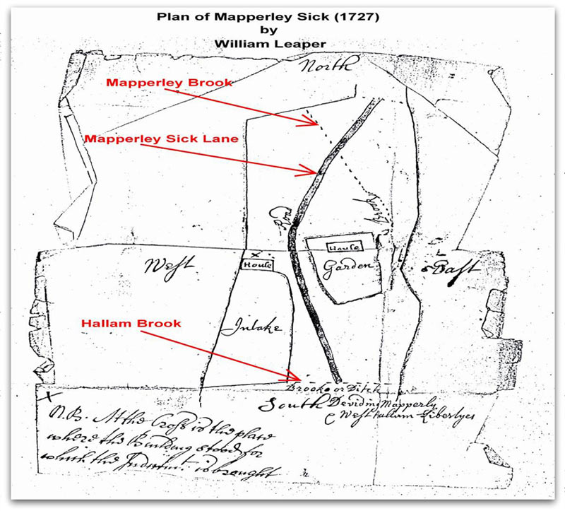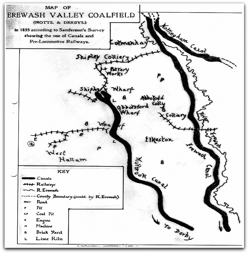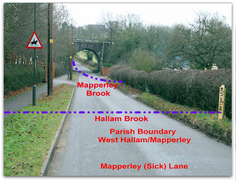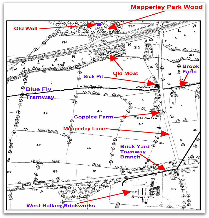 Simonfield to The Brook The Canal Age The downfall of the Simonfield coalfield came with the opening of the Canal System. The Erewash Canal opened to the East in 1779. With Miller Mundy of Shipley quickly laying down a wooden railroad to Newmanleys Mill on the Erewash at Shipley Gate. Opening up new markets for his coals from his Shipley Colliery. To the West came the Derby Canal following the Act in 1793 allowing the Little Eaton Branch to be built. This promised to lay a horse drawn railroad to Smalley, with the expectation that Simonfield coal could be moved by a tramway link to the Little Eaton Canal Wharf, but this never materialised. Seeing the huge potential in canals Miller Mundy of Shipley along with Sir Henry Hunloke .(later continuing with Francis Newdigate when he purchased the West Hallam estate in 1822) invested money in the Nutbrook Canal project. Giving them the opportunity to open more collieries in their Lordships. The canal opened in 1796 joining with the Erewash Canal at Stanton. Tramways and Collieries were soon opened throughout the area. MAP OF TRAMWAY This enterprise again resulting in Simonfield being isolated with no rail network allowed to join up with the Nutbrook. Park Farm had been the main farm and stables for Simonfield tramway horses. This practice continued when the Blue Fly Tramway opened. A horse hospital was built adjoining the stables to care for sick and injured animals. Accommodation was also built on the West side of the farm house for the stable lad. This had a small kitchen and upstairs bedroom. The lad cleaned out the stables, fed and watered the horses and prepared them for a days work. Park Farm Supplying horses for working the collieries continue when the Simon Pit arrived. Horses were then needed above and below ground. This would take another 73 years before deep mining would take place in Simonfield with the arrival of the Glendon Iron Company signing a contract in 1869 to open a New Colliery on the Old Park Hall Estate. ……………………. Mapperley Sic (Sick)What and Where is Mapperley Sic? Sic is an Anglo Saxon word meaning a Stream or Brook. Hallam Brook is the Parish Boundary stream, between West Hallam/Mapperley. (Shown and marked on the photograph note the boundary post). When the mineral railway line was constructed in 1872, by the Mapperley Colliery Company, for transporting coal from their Simon Pit. Mapperley Brook was realigned, with a new culvert built under the road. These two brooks meet at Brook Farm. (Hence the name). From this point the brook flows eastwards using the name Mapperley Brook. Looking at a page from the 1841 Census we see Mapperley Sick Lane listed and the Duroe family listed. So Where is Mapperley Sick? The case against Dr. Wilmot v Freeholders of Mapperley dated 5th August 1727. Stating that about 60 years before (1666). All the Sick was Common Land and Open without any building or closures upon it. Zachary Wathey and his son Samuel gave evidence at the trial. This area was also known as the “Slang” A narrow strip of Land. “The Land between the two Culverts” ![]() Disclaimer - Copyright - Is this page correct? Something wrong or missing? Please let me know. Also contributions very welcome |