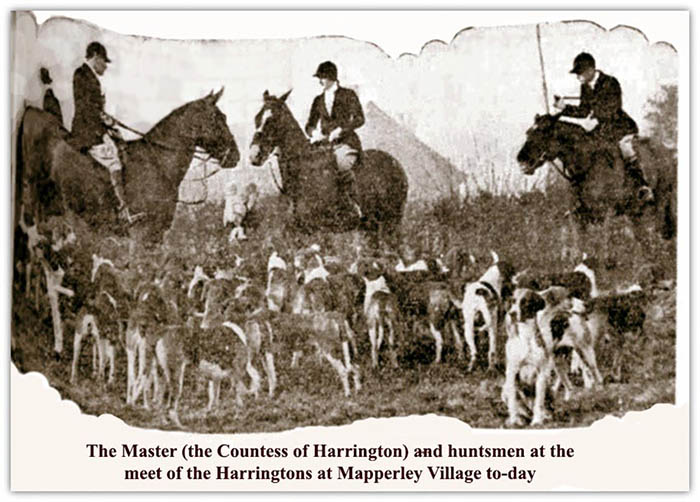 SQUIRE MUNDY'S BODY TO BE RE-INTERRED The body of Mr. Edward Godfrey Miller-Mundy, of Shipley Hall, near Ilkeston, was exhumed to-day and taken south by road. The "Derby Telegraph" understands that the body has been removed at the request of Mrs. Miller-Mundy and her three daughters and sons. Mr. Mundy, who was known as Squire Mundy, died in April, 1920. He was buried in a private burial ground near to Shipley Hall. The rest of the Miller-Mundy family are buried in Cotmanhay churchyard. After Mr. Mundy's death Shipley Hall was vacated, and still stands empty. SURPRISE IN VILLAGE Few of the villagers at Mapperley were aware of the exhumation, which caused considerable surprise in the district, where the squire was greatly beloved. It was carried out very quietly among a little group of people including Major Miller-Mundy, Mr. Edward Miller- Mundy's son, Mr. Porter, lodge keeper, who has attended to the cemetery since the squire's death, the Rev. Harry Price, vicar of Cotmanhay, and one or two estate workers. It is understood that the body will be re-interred in the South of England, near where Mrs. Mundy resides. Mrs. Mundy was in the habit of visiting her husband's grave two or three times every year. Derbyshire Advertiser and Journal Friday 15th August 1930 Presentation to Mr. F M Brown at West Hallam New General Manager The officials and workmen of the Colliery Co. Ltd, desirous of marking the appointment of Mr. F M Brown as general manager, the completion of 32 years service with the firm, and his election to a seat on the Board of Directors, met at the Memorial Hall, West Hallam on Friday, to present to him an illuminated address and to him jointly with Mrs. Brown a magnificent canteen of cutlery. These were gifts of the workmen and officials of the company. The address was the work of Mr. Jack Eaton, a surveyor of the Company, and an amateur artist of more than usual ability. Capt W H Gilchrist, presiding, spoke in eulogistic terms of Mr. Brown’s services to the company, and said that though the members of a community might differ on some subjects, they were all unanimous in the admiration and esteem they felt for their new general manager. As a colleague he knew him, and no words of his could express the high opinion he had of Mr. Brown. They wished him long life and many years of success in his new office. Derbyshire Advertiser and Journal Friday 12 December 1930 Mr. John Parker, farmer, of Lady Wood, Kirk Hallam, was motoring from Derby on Wednesday when three young men thinking he was turning left towards West Hallam, stood in the middle of the road. It is stated that one of them, Mr. George Martin, was knocked down and the car passed over him breaking his leg. Mr. F M Brown, Managing Director of the Mapperley Colliery came upon the scene and fetched his daughter, Miss Peggy Brown, who is training as a nurse at the Derbyshire Royal Infirmary, and she bound the limb and then Mr. Brown sent the victim in his car to the Derbyshire Royal Infirmary where he was detained, but is progressing favourably. Derbyshire Advertiser and Journal Friday 19 December 1930 West Hallam Welfare Recreation The Mapperley Miners Welfare Recreation held a whist drive and dance in the Memorial Hall, West Hallam on Friday, when there was a good muster! The M.C’s were Messrs C Robinson (whist) and A Durow (dancing) Legion Dinner – The Rev. W Ratcliffe, branch chairman and chaplain, supported by Eric Haslam, F M Brown, D W Flint, M M (Military Medal First World War) branch secretary, E Mayfield, P Slaney, and close on 70 members of the branch, presided at the first annual reunion dinner in the Memorial Hall, West Hallam, on Saturday. An excellent musical programme was provided by Messrs G Baskin, Jack Hutton, Norman Dale and H Monks. The catering was in the hands of Mr. Whitmore of Ilkeston. Directorship – the inhabitants of West Hallam will offer their congratulations to Mr. F M Brown on his formal election to directorship of the Mapperley Colliery Co. Ltd and the Coleorton Co Ltd, on Saturday last. For over 30 years Mr. Brown has been general manager of the Mapperley Company’s pits, and his promotion has been well deserved. It is to be hoped he will be able for many years to continue his active interest in the colliery world. Click Here to See Frederick Matthew Brown's Memories Henry Hill had his foot lacerated by a hatchet "which slipped while hedging at Mr. C. H. Hill farm, Mapperley." Nottingham Evening Post Tuesday 21 April 1931 TOOK OVER WHEN INSOLVENT. Though he was aware he was insolent Joseph Bertram Smalley, took over the tenancy of Simon Fields Farm, Mapperley, Derbyshire, and at the Derby Bankruptcy Court today showed liabilities expected to rank for dividend amounting to £3,361 with a deficiency of £2.671. With cash capital of £60 in March, 1924, rented at £275 New Buildings Farm, Burnaston; and a relative paid the ingoing valuation of £600 and also £1,300 for stock. Death of cattle involved him in loss of £350, and when he left he received £160 for the valuation. That was March, 1929, and he then took the Mapperley Farm, of 106 acres at £155 a year. He overstocked the farm and lost 12 cows, worth £300, through disease. Of the unsecured liabilities £2,597 was for money lent and interest owing to relative, and £504 overdraft. The examination was declared closed.