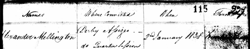 The Nutbrook Canal, Derbyshire Nottingham Review and General Advertiser for the Midland Counties Married On Friday night at Wilne, Mr. Henry Porter, of Hopewell Farm, to Miss Fletcher, daughter of Mr. Fletcher, of Mapperley, Derbyshire. The Derby Mercury shows the population of Mapperley in 1831 as 304 inhabitants The Derby Mercury - Wednesday, January 10th 1838. Derbyshire Epiphany Sessions Results of trials of prisoners Alexander Millington, aged 49, John Millington, aged 24 and William Millington, aged 20, stealing at the township of Mapperley, six pair of boots, 2 pair of shoes, and a quantity of leather, the property of John Hardy - Alexander Millington, transported 14 years, John Millington and William Millington, acquitted Name: Alexander Millington From 1787 to 1868 more than 160,000 men, women, and children were exiled under what the British government called “The System” or “transportation.” Rather than build more prisons or fill more hulks to deal with its growing convict population, they had devised a system of human trash disposal that seemed to have real merits. The felon was “mercifully” left alive, and yet he was still completely removed—out of sight and out of mind; thus “transportation got rid of the prison as well as the prisoners. The Lord Lyndoch was built in Calcutta in 1815 and was of AE1 class, it weighed 638 tons. On her third visit to New South Wales as a convict transport The Lord Lyndoch left Woolwich on 28 March 1838 and Portsmouth on 4 April 1838, this is where Alexander Millington went on board, there was a total of 432 souls on board. As well as Captain Stead and Surgeon Pineo they included Major and Mrs Campbell of HM 51st Regiment and Ensign Dixon. Travelling steerage were Sergeant and Mrs Ashendon with their two children plus 46 marines and 51 of the guards from several regiments accompanied by eight women and nine offspring, undoubtedly families of some of the soldiers. In addition, of course, were the convicts who were categorised as "lading" by the ship's master. The voyage to New South Wales was uninterrupted by ports-of-call and there was no outbreak of contagious disease (such as cholera) during the voyage. One isolated death had occurred a month or so after leaving England and, to quote the captain's report on arriving in Sydney on 8 August 1838, "In Scurvy we have 160. Several have died of it." This last was not remarkable considering the ship had not refreshed its food and water supplies over the eighteen weeks of its voyage from England. In those days, detailed medical records had to be kept by the ships' doctors who accompanied convict transports to New South Wales. Surgeon Pineo was undoubtedly conscientious in this regard for his prescribed journal exists for this voyage of the Lord Lyndoch, as do his embarkation and final reports on the health record of the passage. His last account ran into eight crowded pages and was tendered to "Sir Wm. Burnett, MD, Physician General, HM Navy". The complete chronicle was kept between March 14 and September 6, 1838; it makes interesting, informative reading to illustrate how the British authorities kept the health and welfare of transported convicts, soldiery, guards and ships' passengers and crew in mind, at least during the first half of the early nineteenth century. During this, the third voyage of the Lord Lyndoch as a convict transport, Pineo maintained a daily log of all cases presented to him for treatment en voyage including references to medicines prescribed, the patients' progress and cures effected. For instance he noted that he treated sixteen prisoners who had been scalded by boiling tea, of whom one died. Nineteen prisoners died en route to the colony, eight from scurvy and eleven of old age and diseases contracted before embarkation. After passing the Cape of Good Hope scurvy manifested itself in the prisoners leading to the hospitalisation of 119 of them, although the non-convict complement on the ship seemed to have escaped the complaint. The surgeon explained how he inspected the convicts twice a day, saw that they were kept clean, dry and exercised, dosed them with hot vinegar and chloride of lime on alternate days, he wrote that their diet was "generous" and that they were in bed by 8 pm. The report goes into much more detail than this, indicating that the prisoners were treated as humanely as possible on such a long voyage, even making allowances for the probability that reality was not as benevolent as it was made out to be or as regulations insisted it should be.