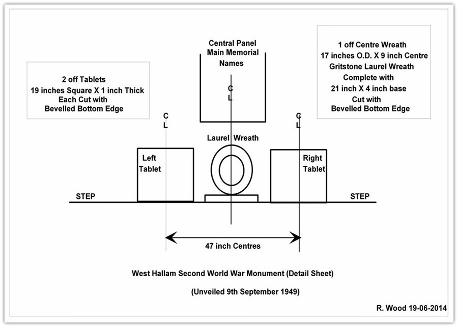 Total Cost of the Monument £400 (Estimated cost today in excess of £500,000) (This article only describes the history of the memorial from the Great War 1914 – 1918) Lest We Forget Remembrance Service November 1998 Taken from the WHM Magazine December 1998 The West Hallam War Memorial (Taken from the West Hallam and Mapperley Church Work has begun on the refurbishment of the War Memorial and its surroundings. Below is an excerpt from the “Ilkeston Advertiser” about the memorial and its dedication on the 12 August, 1921. "... There was a large gathering at West Hallam on Saturday afternoon, on the occasion of unveiling of the memorial which has been erected to commemorate all from the village who took part in the Great War. The ceremony was performed by Captain Fitz- Herbert Wright, formerly of West Hallam Hall, and he was accompanied on the platform by the Lord Bishop of Derby, Rev A E Weeks (rector of West Hallam), Captain Gilchrist, Lieut S Rook and Mr. Raby (Chairman of the Parish Council). Among others present were Mrs FitzHerbert Wright, Rev A E R Bedford (rector of Morley and formerly of West Hallam) and Mrs. Bedford, Mrs Rook, the Church Choir, the Band and about 50 members in full re-galia of the RAOB. connected with the following lodges: Scargill (Punch Bowl, West Hallam), Victory (Smalley Common), Queen of the Valley (Wine Vaults, Ilkeston), Middleton (Rutland Hotel, Ilkeston), and Hanson (Ancient Druid, Ilkeston). Most of the principal inhabitants of West Hallam were also present. The memorial has been erected near to the entrance to the churchyard, on a piece of ground given by Mr Spencer Rook, of West Hallam Hall, who also generously defrayed the cost of the foundations and the low boundary wall in front. It is an ideal position, being at the same time prominent, but so out of the way that any danger of damage has been entirely avoided. The memorial is undoubtedly the finest of its kind hitherto erected in the district. It is the design of Messrs. James Beresford and Sons, of Belper, by whom the whole of the work has been carried out in a most artistic manner. It is in the form of an altar tomb, same as those being erected in the cemeteries of France. It is executed in Darley Dale grit stone, specially selected, the bottom step covering an area of 10ft 6in by 7ft 6in. On the "Lamb" are mounted eight white Sicilian marble panels, bearing all the names engraved in imperishable lead. The names of the nine who fell appear on the centre front panel, which reads as follows: "Sacred to the memory of D Barber, T Brown, F Bancroft, R Elliott, W Flint, E Hartley, T Pettitt, H J Preece, W Toplis, our glorious dead". Over the panel and across the full width of the monument is the inscription "Roll of Honour. Men of West Hallam who served in the Great War 1914-1918." Across the base are the words "For God, King and Country," a laurel- wreath carved in stone underneath. Surmounted on the pedestal is a handsome portrait war study of two soldiers with machine-gun. The whole being exquisitely carved from a single block of Sicilian marble, weighing at the outset no less than ten tons. The bold conception of the design and the general effect have given great pleasure to the committee and subscribers, and are highly creditable to Messrs Beresford and Sons..." Second World War Memorial by Roger Wood 2019 West Hallam Remembers Monday 9th September 2019 70th Anniversary of the Unveiling of the War Memorial Tablets West Hallam War Memorial The induction took place on Friday October 28th 1938 of the Reverend William Richard Lloyd Jones to the Rectory of West Hallam. Eleven months after being in office, War was declared on Germany. He is still remembered today, for his help and support given to many parishioners during this difficult time. He was also responsible for extending the churchyard extension and raising funds for a much needed new Rectory. He left West Hallam in November 1945, being replaced by Reverend Gordon Charles Craig Spencer. His first community project was to erect a war memorial to remember our fallen. A committee was formed, giving them the responsibility of selecting the type of memorial required and the names that would be listed upon it. The Memorial Committee Secretary Mr. Bacon issued this notice: West Hallam War Memorial Committee (Notice) The above Committee will settle the final list of names of West Hallam Men and Women who died between the War Years 1939-1945. Whilst on Active Service. Serving in the Armed Forces, or one of the Allied Services. The List is restricted to those who had died between the commencement of war and December 31st 1945. Consideration will be given to anyone who died after this date if death was due to their War Service. The deceased persons must have had a home Address in West Hallam during the period of the 1939-1945 war. M. L. Bacon (Hon. Secretary). (November 1946). Church Council Meeting (1946) Notes on a proposed Church War Memorial: The Council has considered the erection of a War Memorial in the Church in the form of a book of Remembrance. Which would, then be used at the annual Remembrance Service. This can be displayed in a glass case in the Nave, near the North door. A drawing of a suitable case has been prepared by Mr. Frederick Ogden of “The Yews”, Stanley. This was considered by the Council, alternative designs and estimates are now in preparation. Annual Report on the work of the Church Council. (1946). Gordon C. C. Spencer (Chair). West Hallam War Memorial Discussion At a meeting held at Scargill School, Beech Lane, West Hallam last night (Wednesday 26 May 1948), to discuss improvements and additions to the village war memorial. It was decided that estimates should be asked for, as all expenses would have to be met by public subscription. Derby Daily Telegraph Thursday 27th May 1948. Page 3. Parish Council Meeting It was decided to proceed with a scheme, proposed. Costing approximately £150, to be raised by public subsc