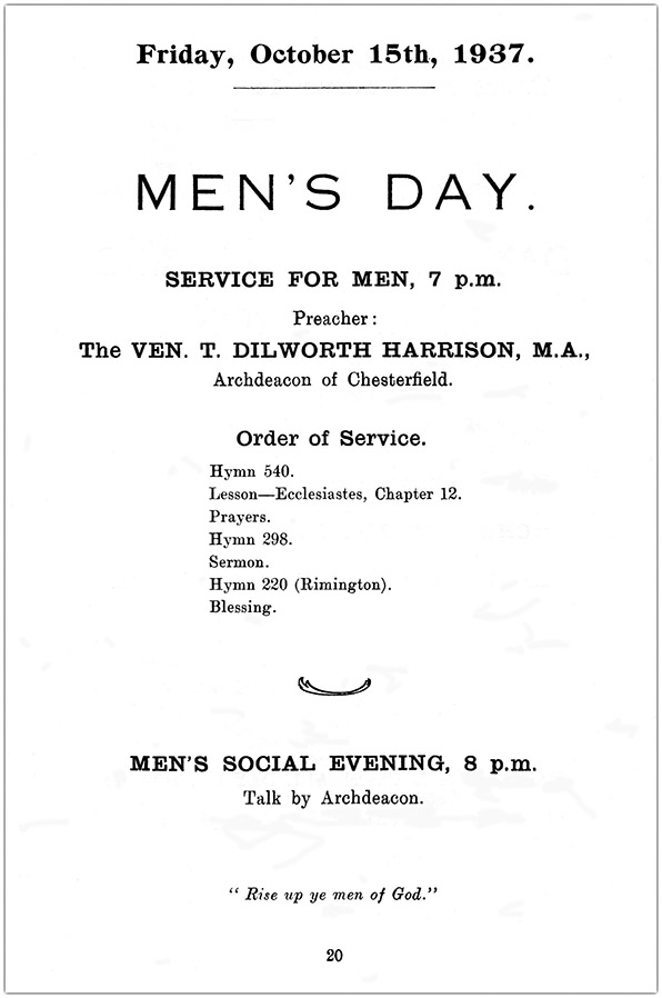 Rev. Wm Ratcliffe's Booklet October 1937 - St Wilfrid's Day Dedication Pages 2 - 14 converted to text below Message from the Bishop. Dear People of West Hallam, I have heard from your Rector, with great interest, of the manner in which you are planning this year to observe the week which includes St. Wilfrid’s Day and also of the booklet in which this letter is to appear. It is a matter of regret both to me and to my wife that neither of us (because of the number of our engagements planned a long time ahead) is able to pay a personal visit to the parish during that period, in accordance with the invitation which came to us from your Rector. I desire, however, to send you my blessing and the assurance of my prayers for your parish during your Festival Week, which I hope may be to you all a time of much spiritual profit. I recall with pleasure the visit which I paid to you in connection with the observance of St. Wilfrid’s Day last year. The challenge of Christ in these days is a ringing challenge. 'What He demands and asks of us is nothing less than the complete consecration of everything that we have and are, “ ourselves, our souls and bodies,” to His service. May there be in the parish of St. Wilfrid’s, West Hallam, so manifest a revival of spiritual life, so real a spiritual awakening, that the Church people there, may, in the midst of those actual surroundings in which they are placed, bear to our Lord Jesus Christ so effectual a witness as shall arouse and awaken others to a like faith and loyalty. Yours very sincerely, 2 Letter from the Rector My dear Friends, My object in writing this letter is to commend the effort that we are making during this Dedication Week to your prayers and service. "You will find in this book a full list of the Services, etc., to which all are invited I trust you will find this booklet of interest and value. The parish of West Hallam is a very ancient one—with a glorious tradition. Many have lived in this village for a long time—born in the place—and their ancestors go far back into the past—in fact they make up the history of that past. To these I hope the booklet will stir them to be worthy of the heritage which their ancestors left them. Others have newly settled in this parish, and are ignorant of the history and heritage into which they have come to dwell. I trust that this booklet will help them to settle and in time them-selves to become an integral part of the life of the parish. Now as regards the Dedication Week, may I explain what is in mind and for which I appeal? “ For Christ the King.” A renewed effort on the part of all to serve Him and to worship Him. This week is set apart so that each and all may find their opportunity of worship and service. See to it that you make use of this week, and pledge yourselves to serve your King, not only during this week, but for ever. May God bless all our efforts begun and continued in His Name. Yours very sincerely, 3 Saint Wilfrid Our patron saint is no legendary figure about whom little is known, but a man with a definite place in history, and that the history of our own land and people. The 7th Century is often described as the Golden Age of the English Church. At the time of Wilfrid’s birth (634), the missions of Augustine and Aidan were still fresh in men’s minds and their world unspoilt. Nowhere was the result more wonderful than in Northumbria. At an early age Wilfrid became a pupil of the great Abbess Hilda, at Whitby, and among his contemporaries were such men as Cuthbert, Chad, and Bede. No winder that among such people and at such a time Wilfrid’s thoughts turned towards monasticism and learning. He was also a traveller and a man very much in touch with the world. As quite a young man he travelled to Canterbury and thence to Rome, and the result of these travels was that his outlook was very much wider and more in touch with European (at that time Roman) thought than most of the leaders of northern England. The result of this was quickly apparent. He played a leading part in the Synod of Whitby (664), with the result that the English Church accepted the Roman calendar, and by so doing, not only closed up differences at home, but came into line with the remainder of western Christendom. Wilfrid was then only 30 years old, but already a marked man, and preferment came rapidly (Bishop of York). But with preferment came further travels and endless troubles, which meant for a time that he lost his See of York, v"as for several years a wanderer, then became Bishop of Lichfield before being restored finally to York. No difficulties could daunt Wilfrid. Wherever he went he became teacher, leader and builder. He has been described as a great creative artist. He not only built abbeys—Ripon, Stamford, Oundle, Hexham and Evesham— but saw that they were beautifully furnished. He was also a skilled musician. During the latter half of his life he was in close contact (not always friendly) with another great teacher and organiser—Theodore. Wilfrid had a great capacity for friendship, but also was often in trouble. Very much a child of his own time, he was also ahead of his time and wished to see the English Church definitely linked up with Rome and the European mainland. Some will see in this a great cause for gratitude, while others are inclined to see him as the first to encourage Papal claims and jurisdiction in England. What we can safely say is this, that he must have been a wonderful and a most attractive man, perhaps at times not too rich in charity, but inspired by dauntless faith and hope, and gifted with great clearness of vision and tireless energy. In his own day Wilfrid served his Church nobly. We may well thank God for him and try in our own day to shew equal faith, vision, courage and energy. Our Church dates back to 1275, and it is just possible that our dedication recalls some definite link between St. Wilfred and our parish. 4 REGISTERS OF WEST HALLAM, NOTES R