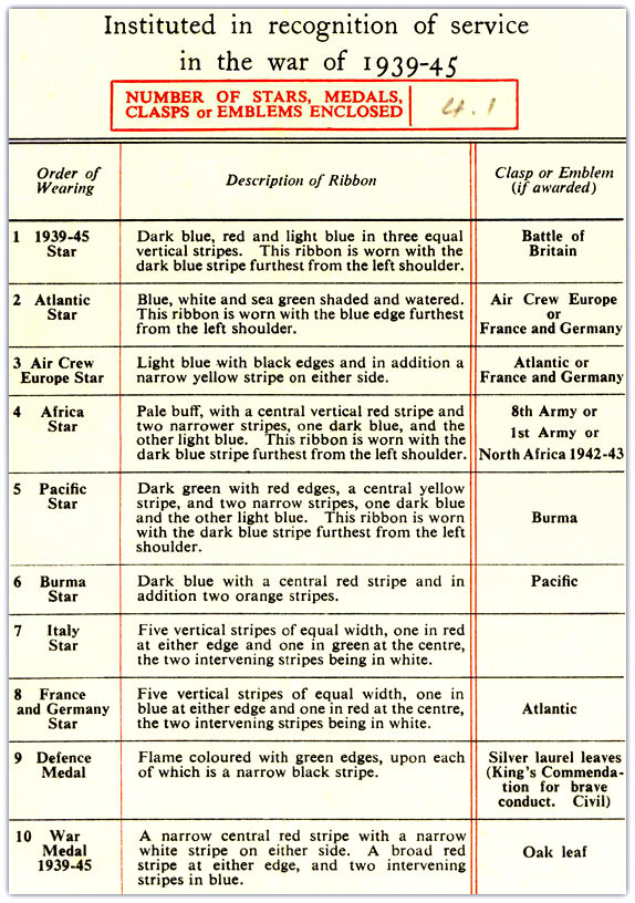 WW11 George Sarson, Africa, 1st Army Clasps