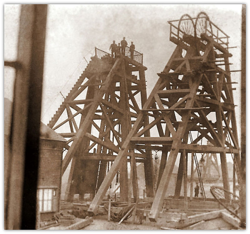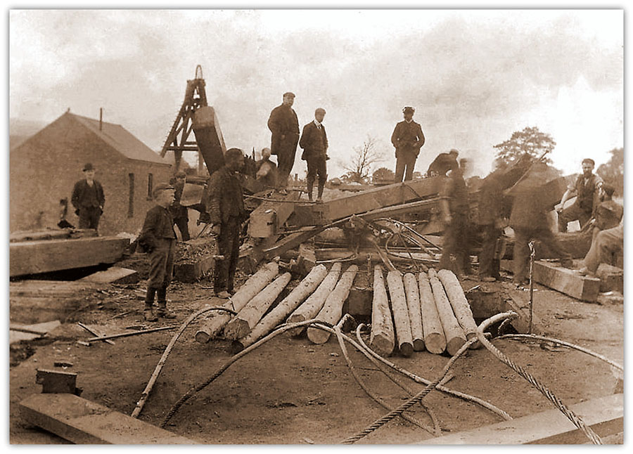 Spencer, George, Manager of Mapperley Colliery, Remembered Changing the  Headgear at Mapperley Colliery, Derbyshire Following the Annual inspection of the Headgear at Mapperley Colliery during March 1901, slight signs of decay were found in the timbers. Although they were still perfectly safe to use, it was decided that they should be replaced. The original headgear had been fitted in 1872 and was nearly 30 years old. George Spencer (Agent and General Manager) of the Company recommended to the Directors that the headgear should be replaced within the next two years. This was agreed, and he was asked to proceed in getting a replacement immediately. The headgear was constructed of Pitchpine and it was essential that only the best quality timber available should be used in their manufacture. Colliery headgear had to withstand the rigors of the demands required during the working day and be reliable for the safe transport of the miners up and down the pit shaft. George consulted Joseph Woolley of Allestree, Derbyshire. Timber Merchant and manufacturer of Carts, Waggons and equipment required for Agriculture, Railway and Coal Mining contracts. The Mapperley contract awarded to Woolley’s was to supply the timber, carry out all the necessary joinery operations required (e.g. sawing of timber and joint preparation), within their workshops. Supply all sundries, metal work, strengthening plates, bolts, dowels etc. Transport the finished components to the Mapperley Colliery site, and re-erect the headgears to a state of completion. (At a location specified by the Colliery Company). The colliery would then have the responsibility of dismantling, and placing the said headgear, over the pit shaft as and when required. Woolley’s commenced the work immediately and by July 1901 they placed the following advert in the Derby Daily Telegraph (*1)